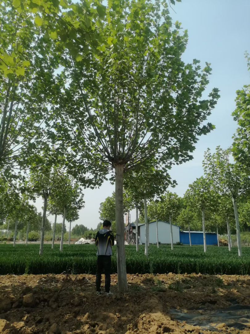 【基本信息】 杆径: 米经 22-25公分 高度: 700-700 厘米 冠幅: 400-400 厘米 质量: 一级苗 【详细介绍】 山东济宁李营苗木大市场曙光苗木基地,自有法桐种植基地,22-25公分法桐为基地常年主营规格,杆直帽圆,冠幅饱满,土球完整,成活率高。基地直供,可现场选苗、号苗,按需装车,全国可发。支持提供装车、检疫、调车一站式服务,欢迎工程采购商实地考察或视频看苗。